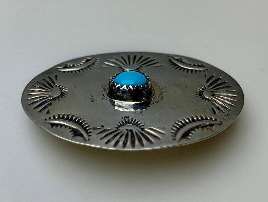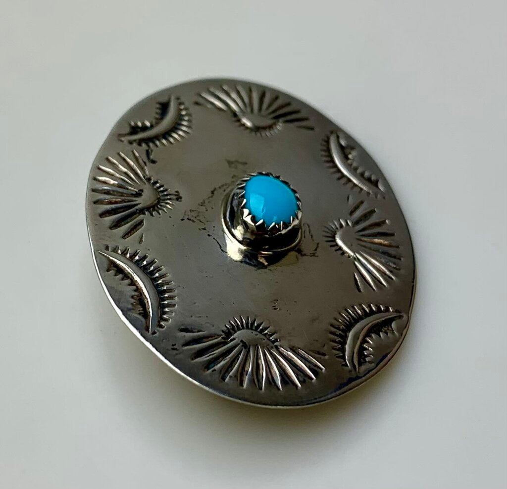 Vintage Sterling Turquoise Concho Brooch Pin (1.75")