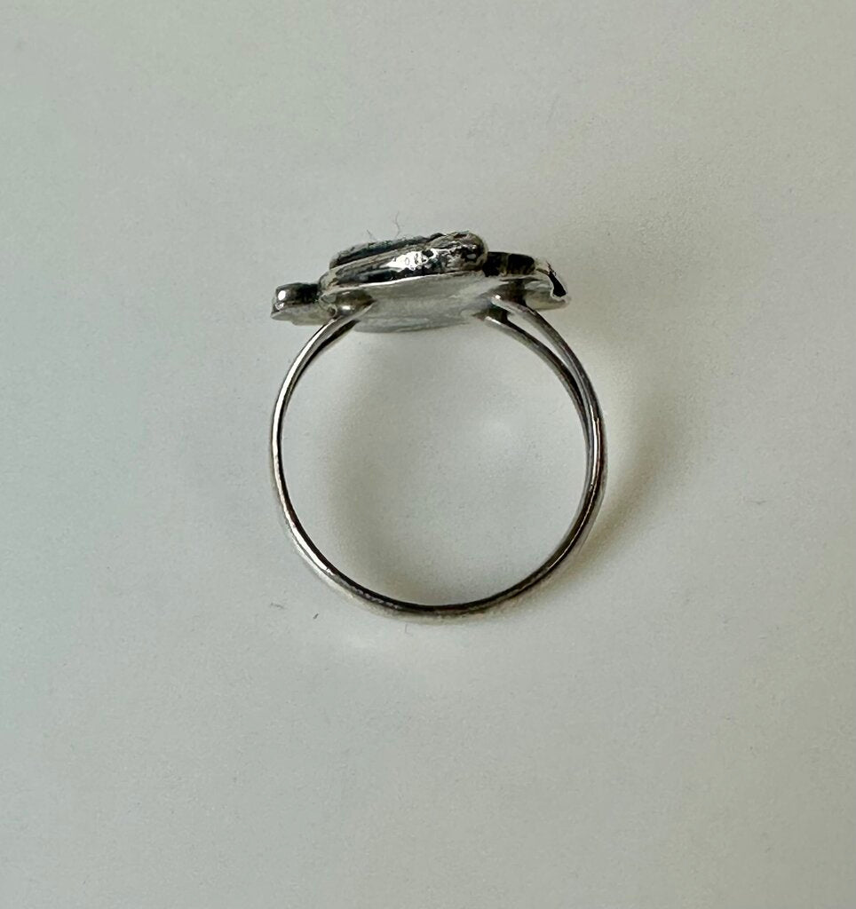Vintage Sterling Turquoise Two-Stone Feather Flourish Ring As-Is sz 8