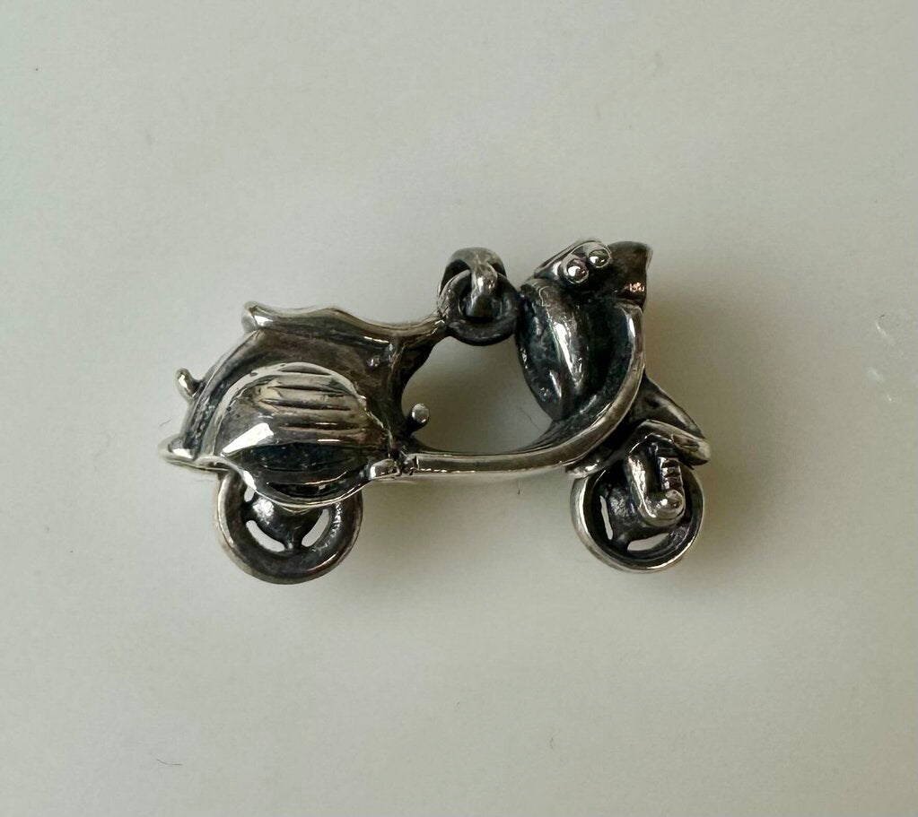 Vintage Sterling Vespa Scooter Pendant w/ Moveable Wheels (1.25")