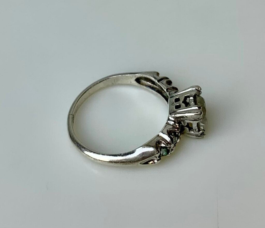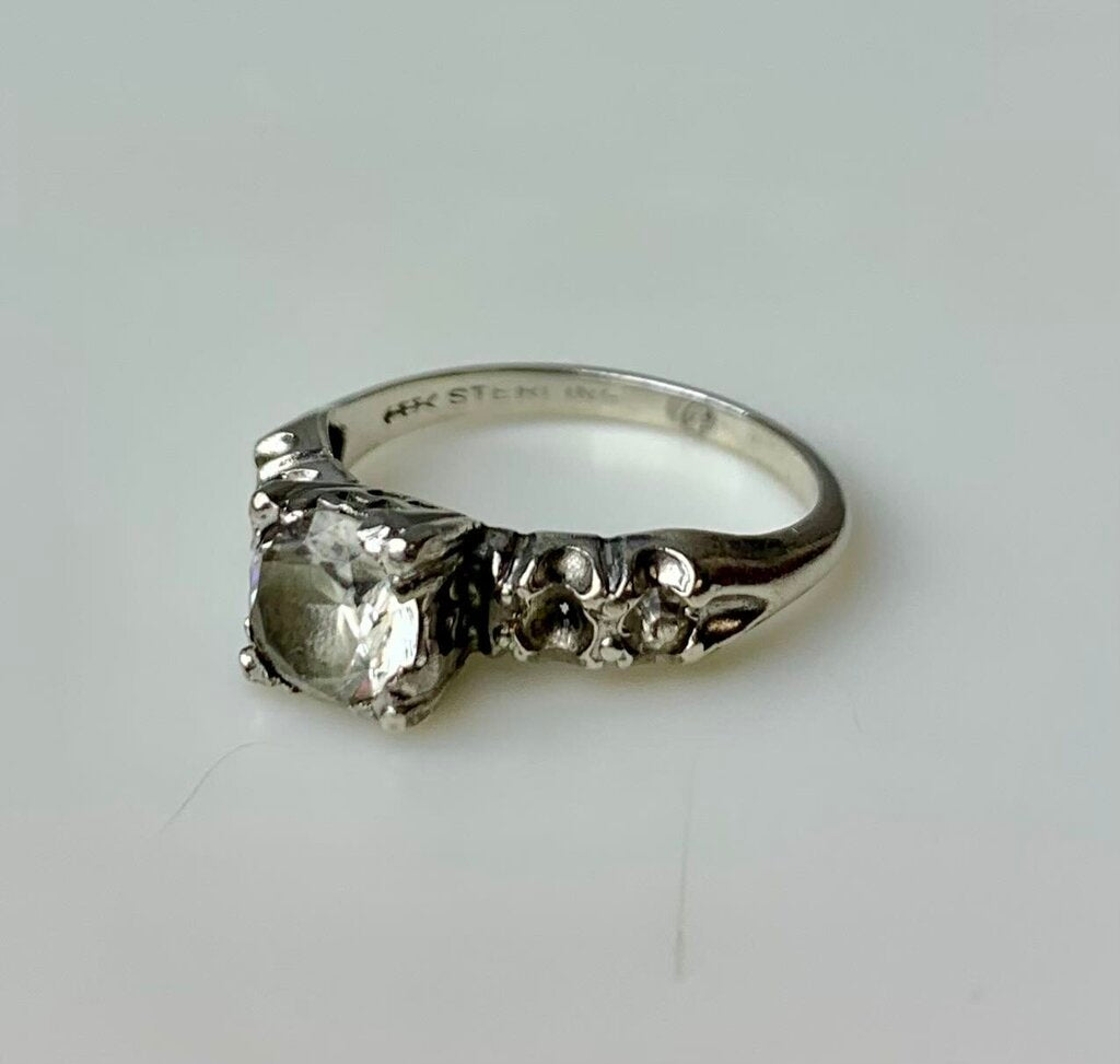Vintage Sterling White Topaz Engagement Ring sz 4.75 As-Is