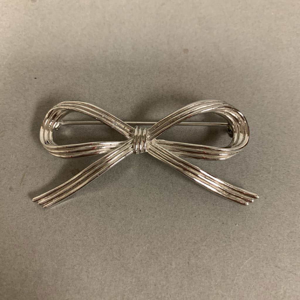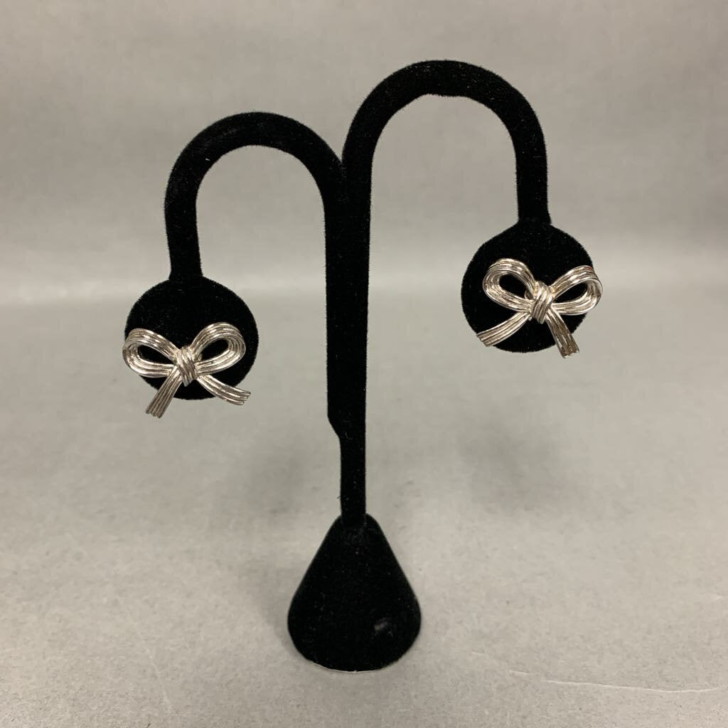 Vintage Trifari Silvertone Bow Brooch & Clip Earrings Set