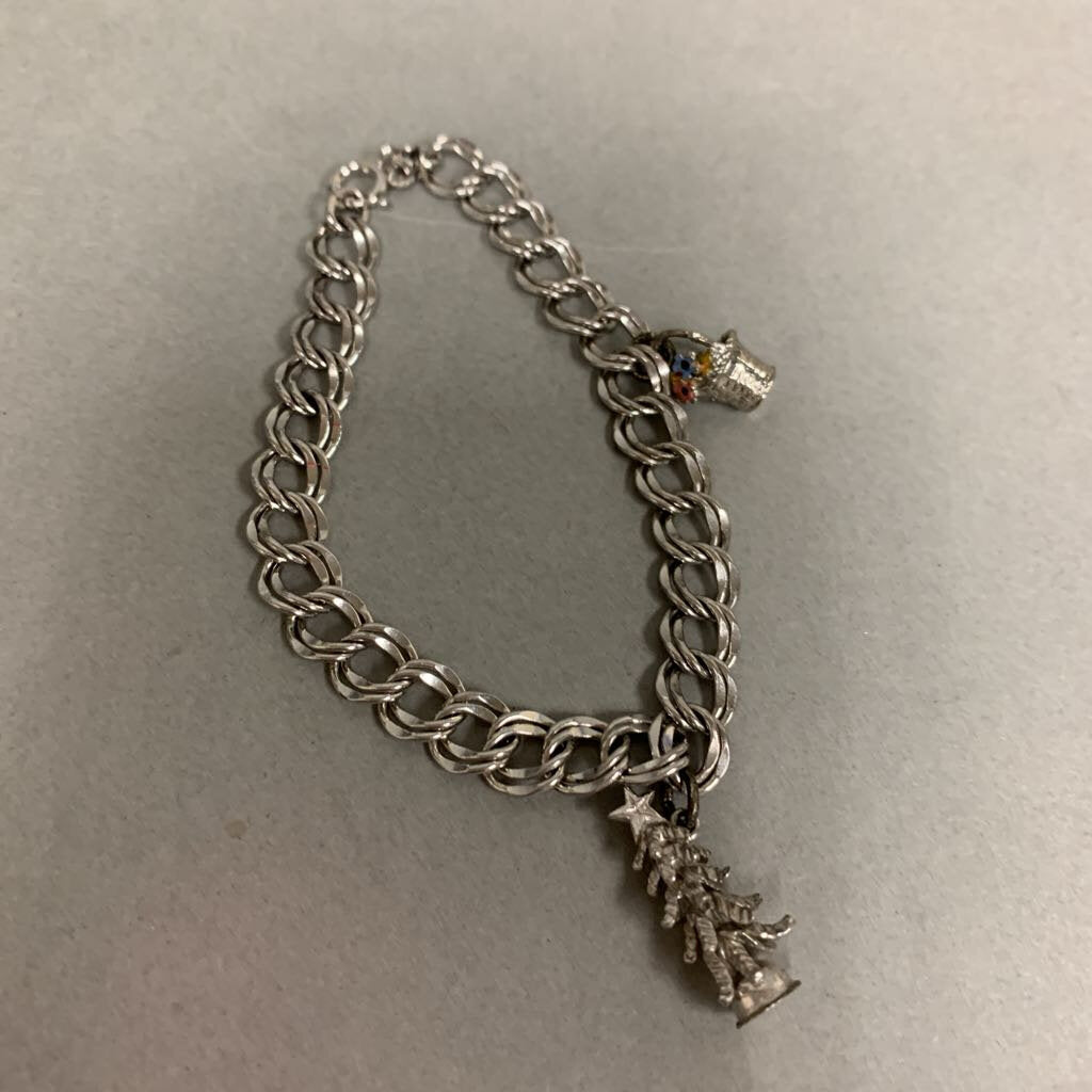 Vintage Wells Silver Filled Charm Bracelet w/ 2 Charms (7")