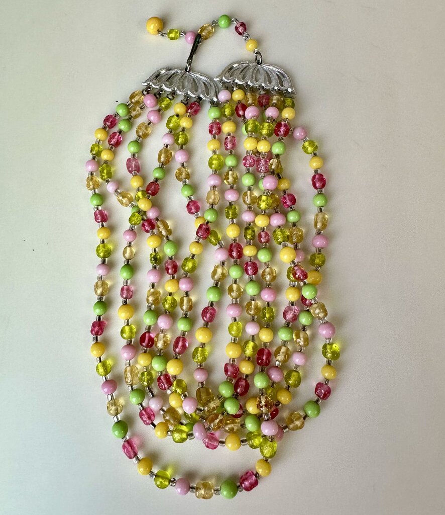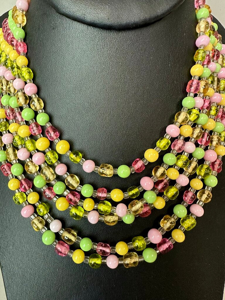 Vintage West German Pastel Glass Layered Bead Necklace (15")