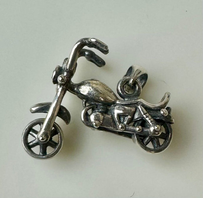 Vintage Sterling Motorcycle Chopper Pendant w/ Moveable Wheel (1")