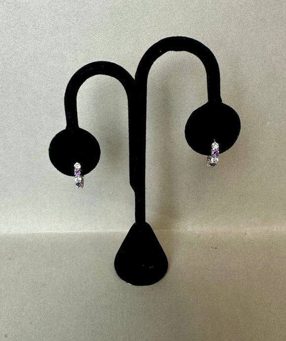 Sterling Amethyst Cubic Zirconia Hoop Earrings