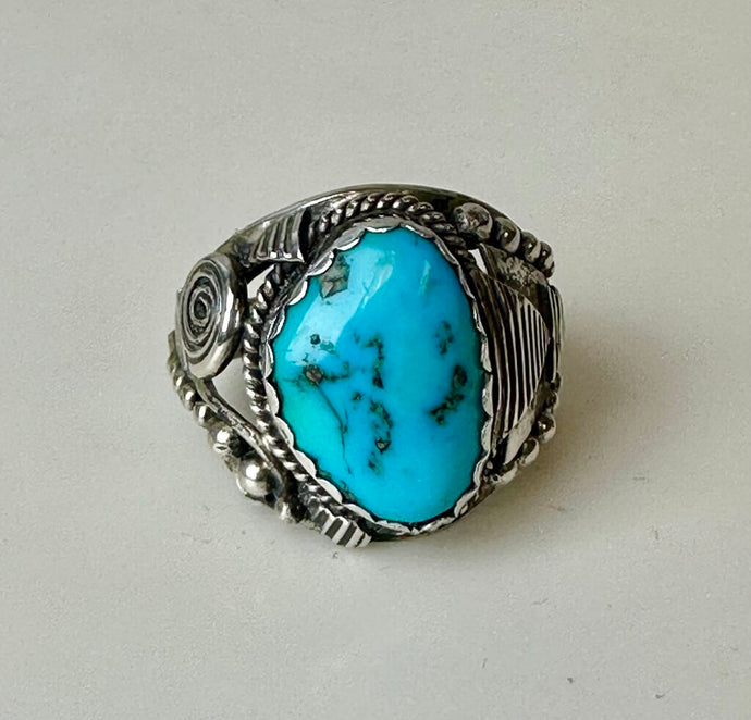 Vintage Navajo Sterling Kingman Turquoise Ring Signed sz 12.5