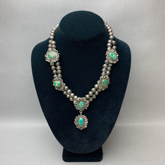 Vintage Native American Sterling Green Turquoise Drop Necklace As-Is (17" with 2.5" Drop)![]()  - Regular price