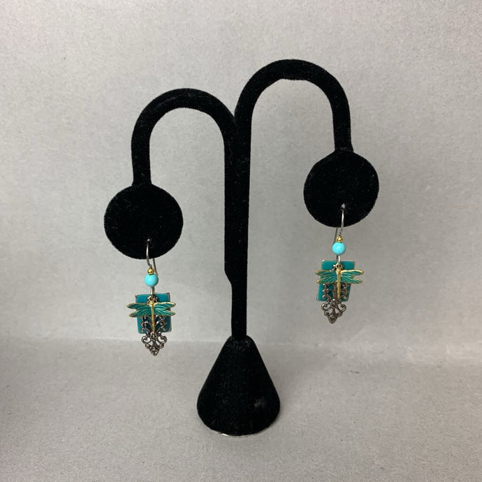 Silver Forest Dragonfly Turquoise Charm Earrings![]()  - Regular price