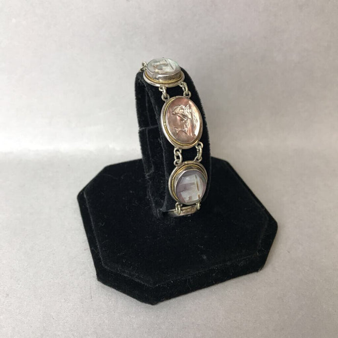 Vintage 800 Silver Carved Abalone World Tour Cameo Link Bracelet (7")![]()  - Regular price