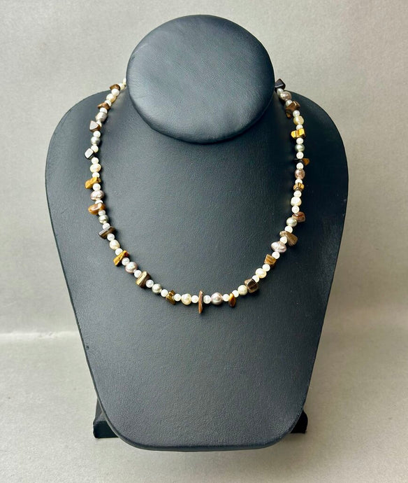 Freshwater Pearl Tigers Eye Beaded 16" Necklace