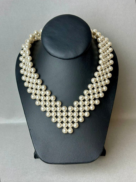 VIntage Napier Woven Faux Pearl Collar Statement Necklace 18")