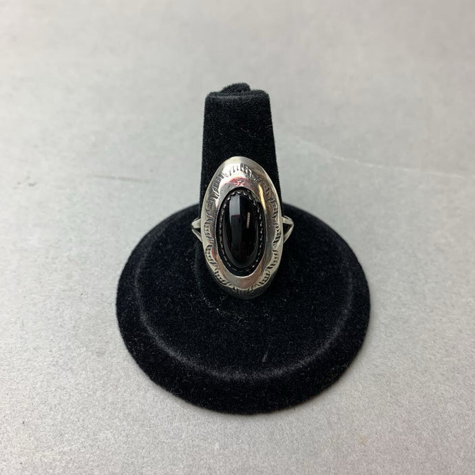 Vintage Sterling Onyx Concho Ring Signed sz 5.5