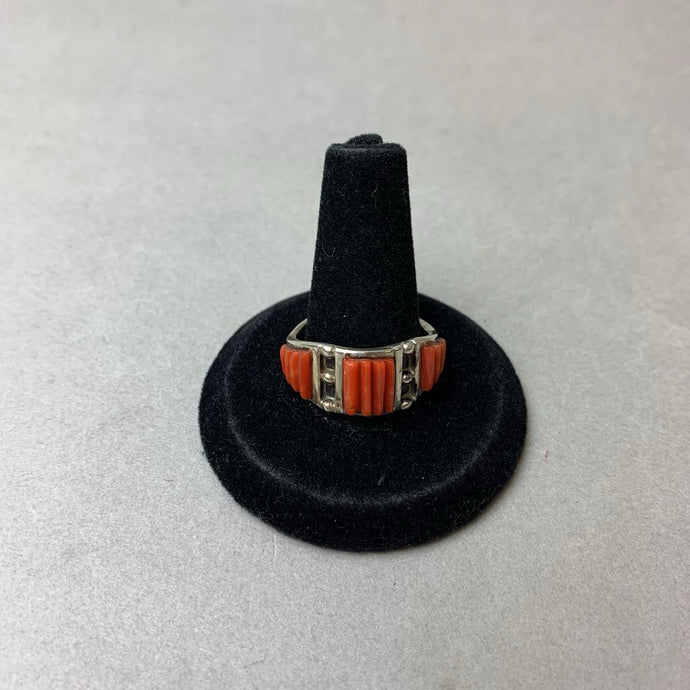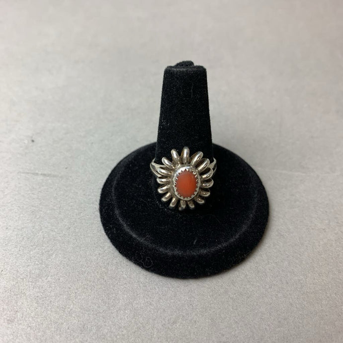 Vintage Native American Sterling Red Coral Unique Setting Ring sz 6