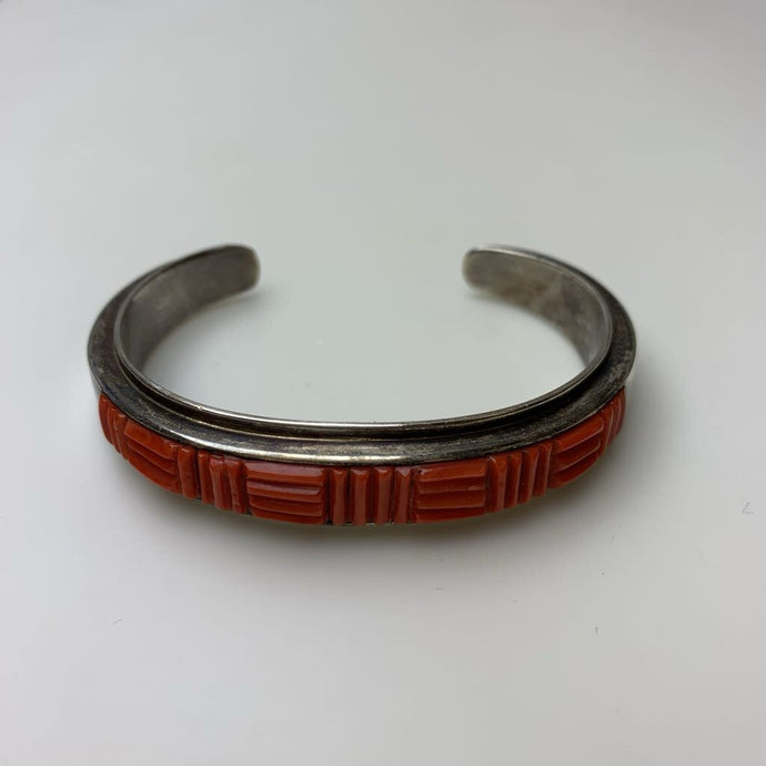 Vintage Navajo Sterling Red Coral Cobblestone Inlay Cuff Bracelet Garrison Boyd 1984 Signed (2.25" Inside Diameter)