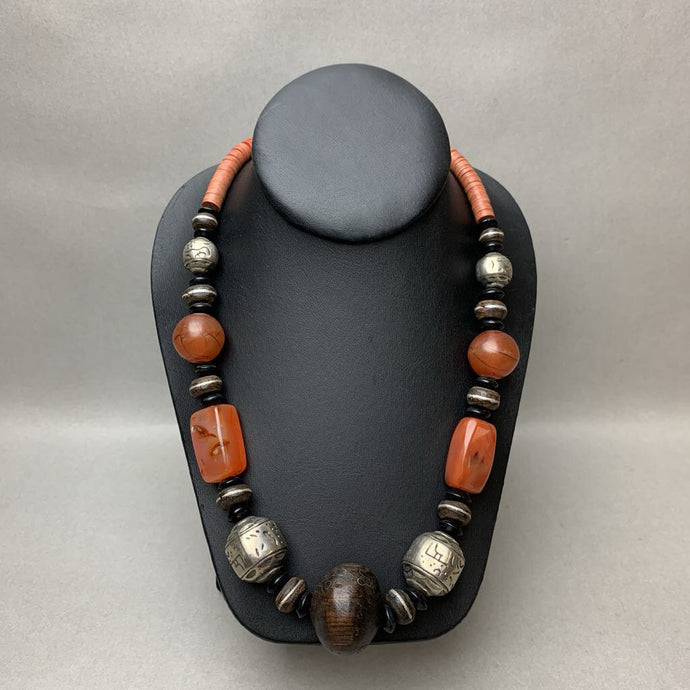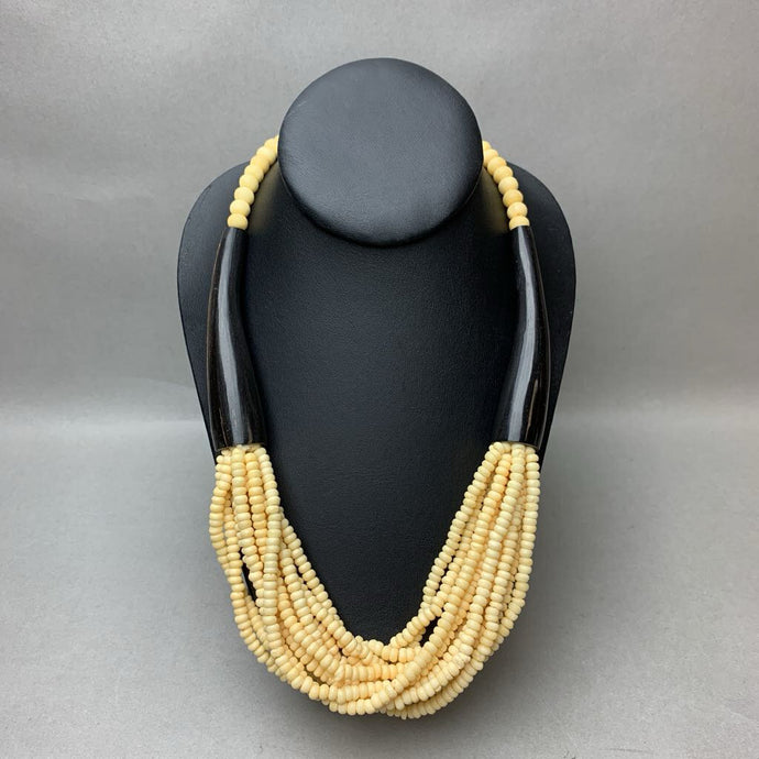 Vintage Horn & Carved Bone Layered Bead Necklace (25")