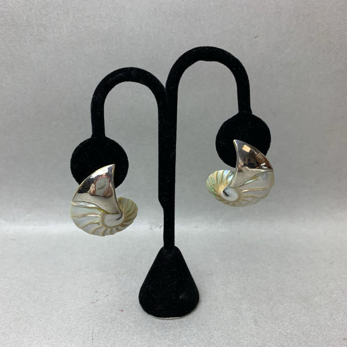 Sterling Tipped Nautilus Shell 1.75" Stud Earrings (As-Is)