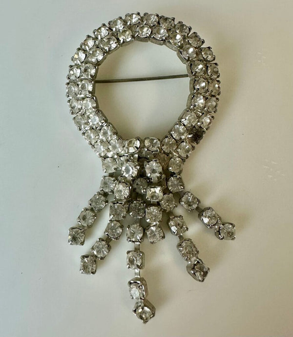 Vintage Clear Rhinestone Waterfall Brooch Pin (3")