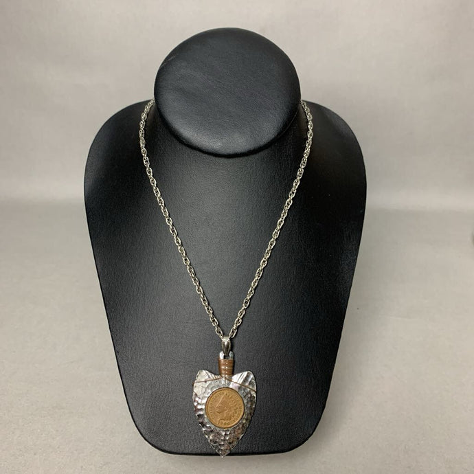Vintage 1906 Indian Head Penny Set in Hammered Silvertone Arrow Pendant on 24" Chain