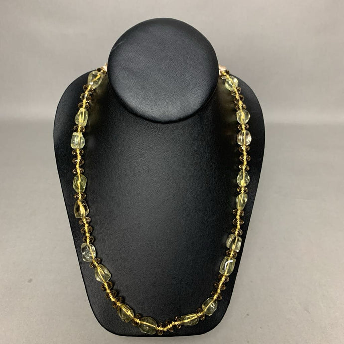 Pale Yellow Faceted Crystal Lemon Quartz Bead Adjustable Necklace (38")