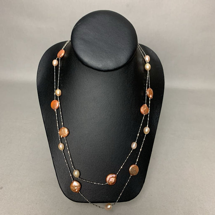 Peach Baroque Freshwater Pearl Station Necklace (50")