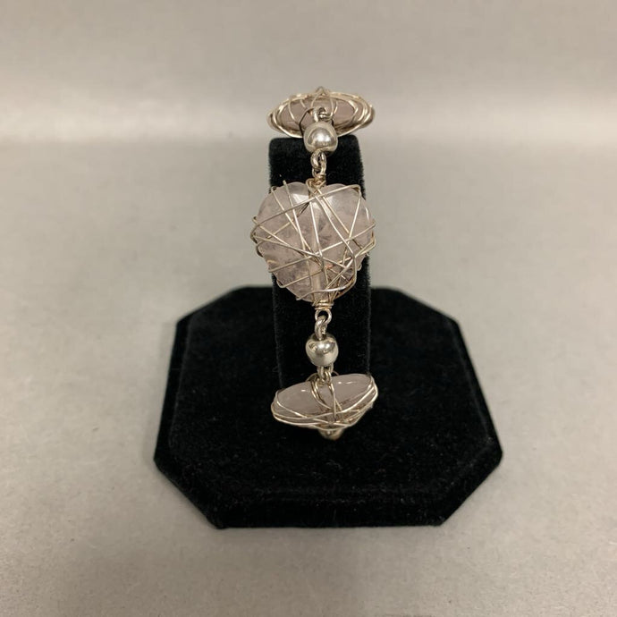 Sterling Wire Wrapped Heart Rose Quartz Toggle Bracelet (8.5")