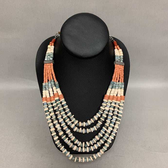 VIntage Clay Bead Bib Suede Cord Necklace (32")