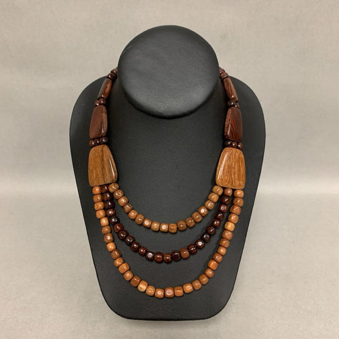Vintage Mid Century Wood Bead Bib Necklace (19")