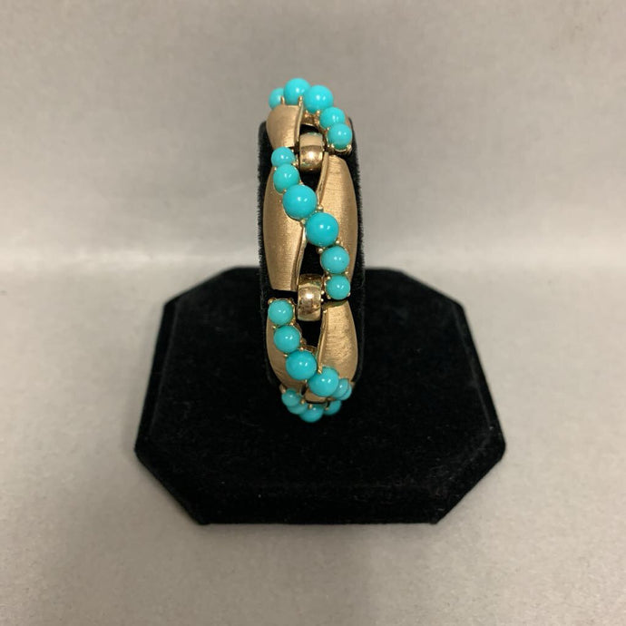 Vintage Trifari Brushed Goldtone Turquoise Cabochon Bracelet Signed (7")