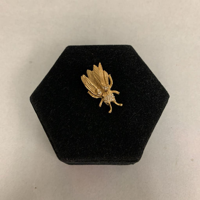 Vintage Jeanne Goldtone Rhinestone Bobble Wing Moth Brooch Pin As-Is (1.5")