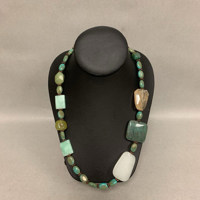 Turquoise Jade & Quartz Copper Beaded Necklace (22")