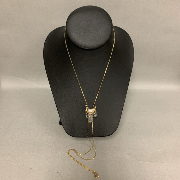 Pewter Goldtone Saddle Adjustable Lariat Necklace (32")