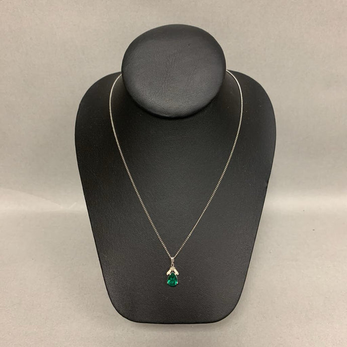 Vintage Sterling Clear & Emerald Rhinestone Pendant on 18" Chain