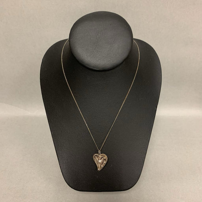 Vintage Sarah Cov White Gold Filled Filigree Heart Necklace (17")