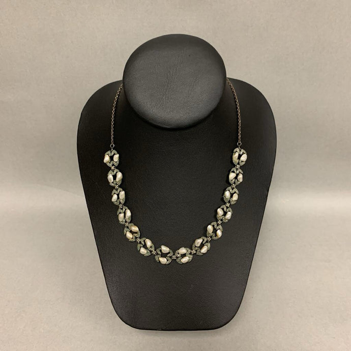 Vintage Sterling Faux Pearl Marcasite Necklace (17")