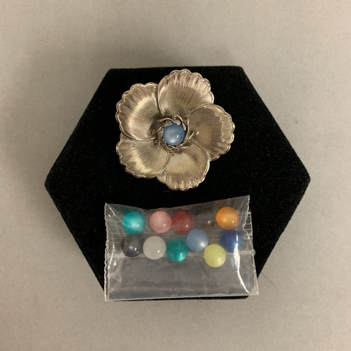 Vintage Silvertone Plumeria Brooch Pin w/ Interchangeable Moonglow Bead Center (2")