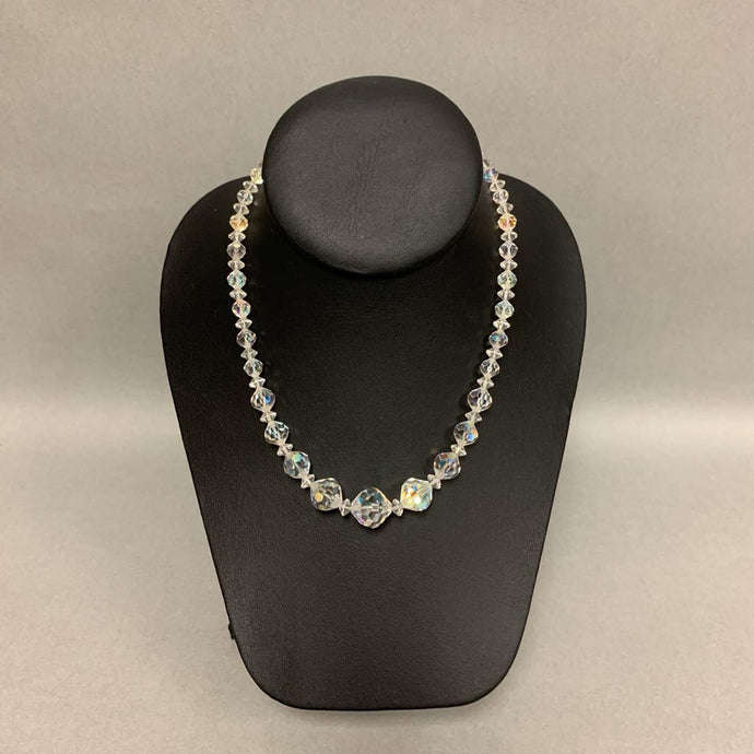 Vintage Clear Iridescent Crystal Beaded Necklace (16")