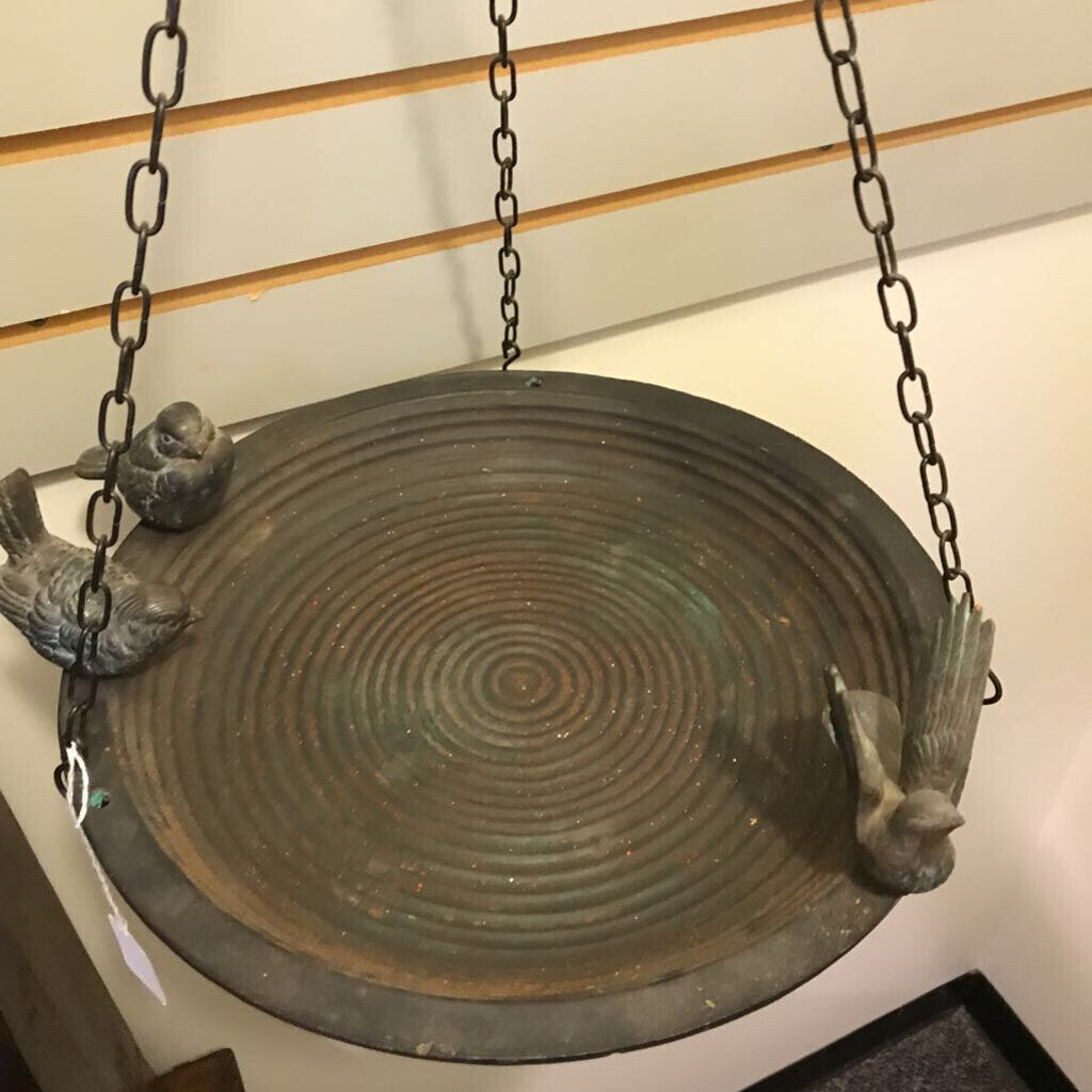 Rustic Hanging Birdbath with 3 Birds (13")
