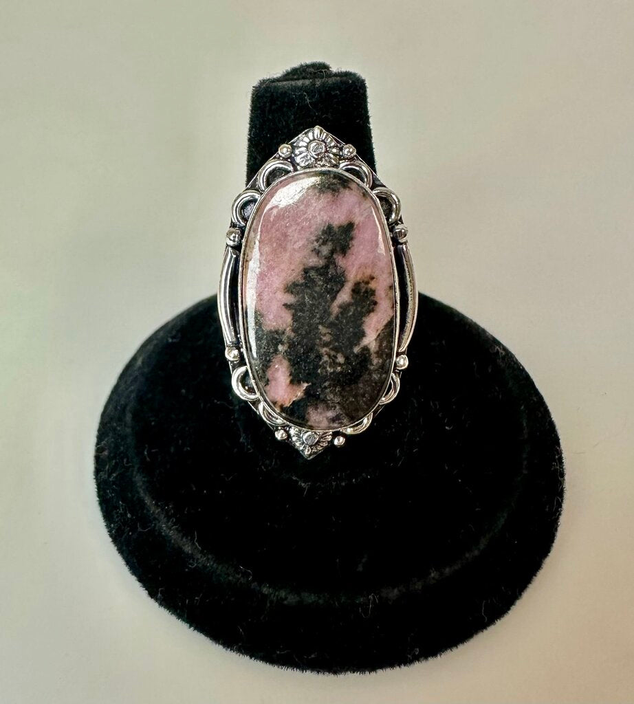 Silver Plated Rhodonite Ring sz 5, Adjustable