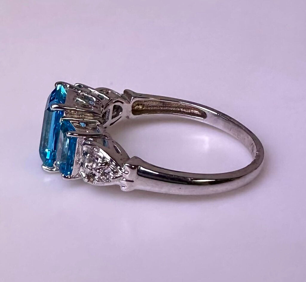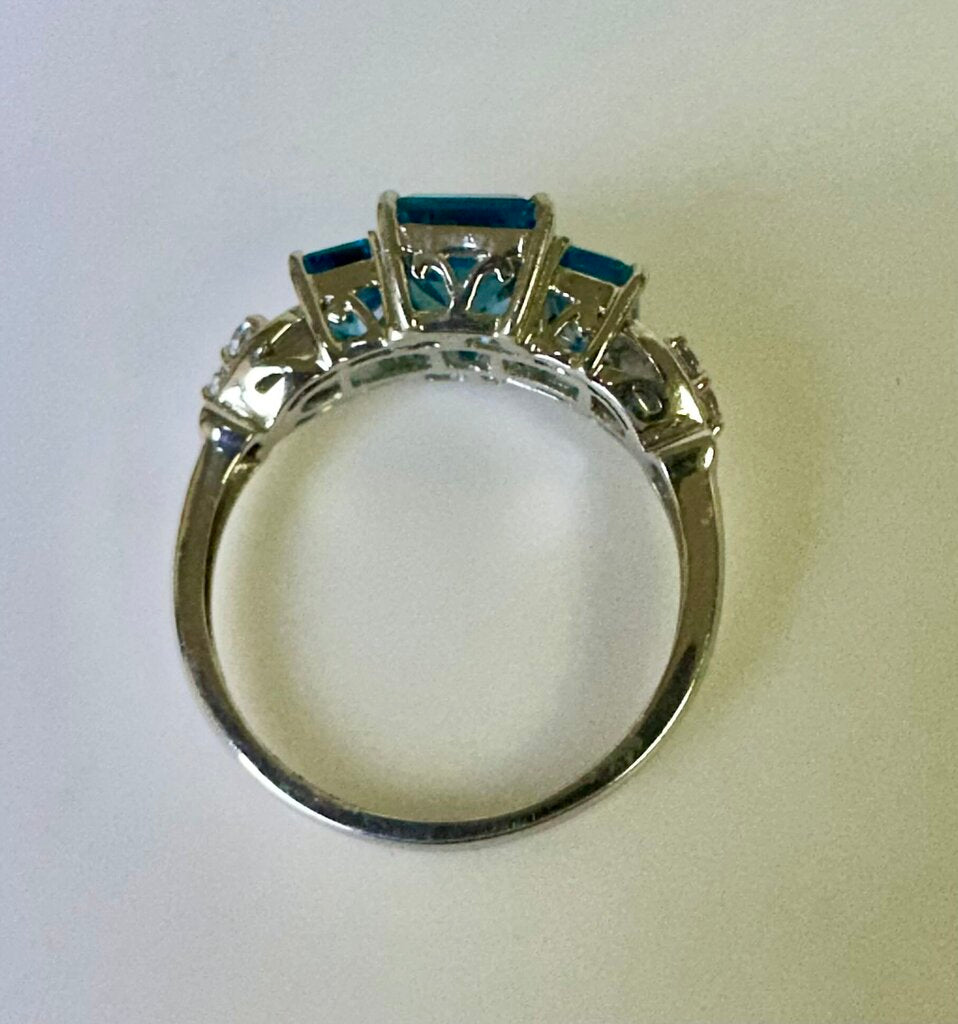 Sterling Swiss Blue Topaz 3-Stone Ring sz 9