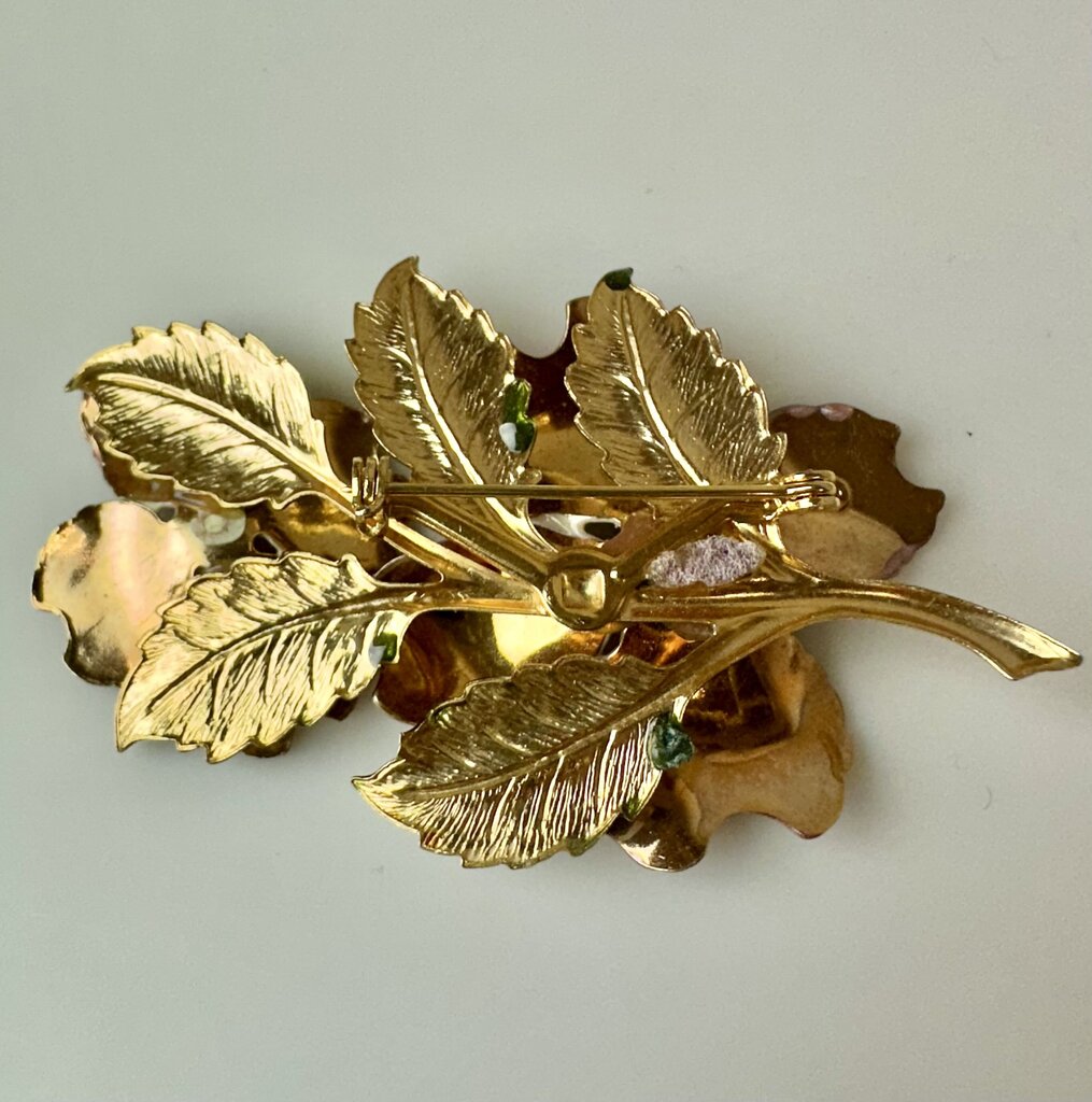 Vintage Giovanni Enamel Dogwood Flowers Brooch Pin (3")