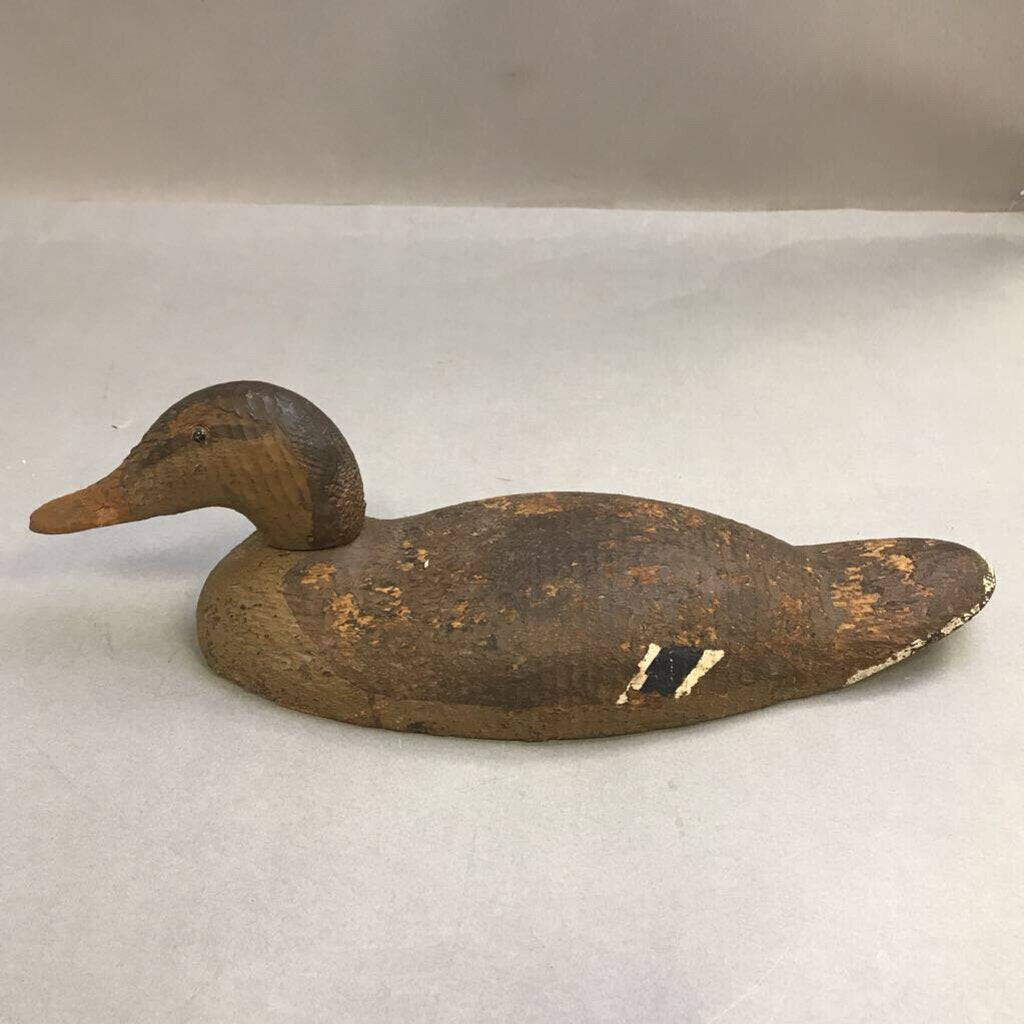 Vintage Rustic Wood Carved Brown Duck Decoy (5x18)