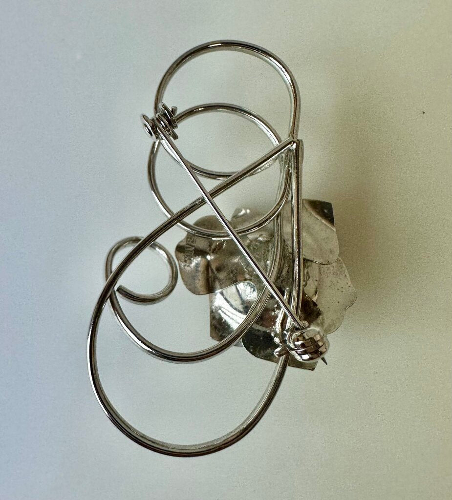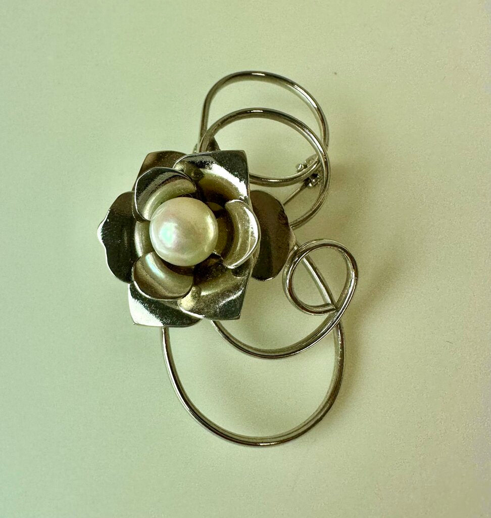 Vintage Sterling Silver Swirl Pearl Rose Brooch Pin (2.25")