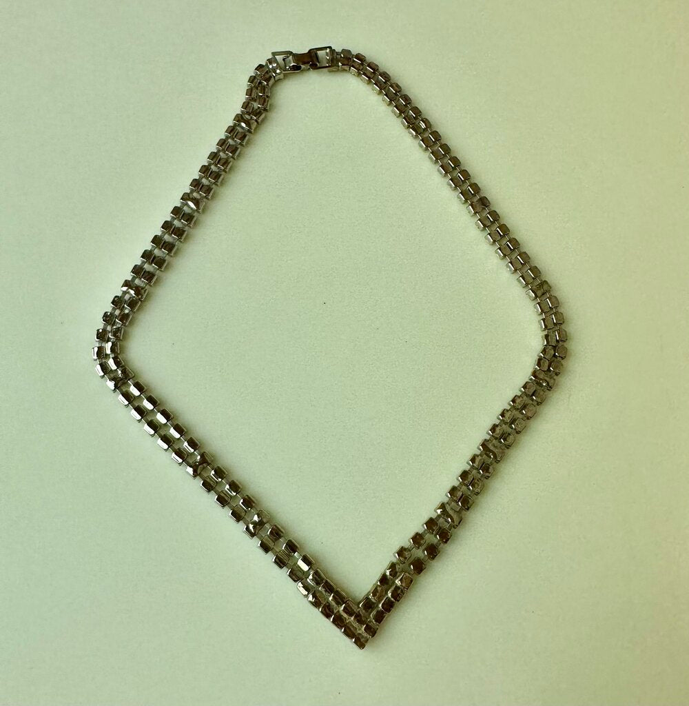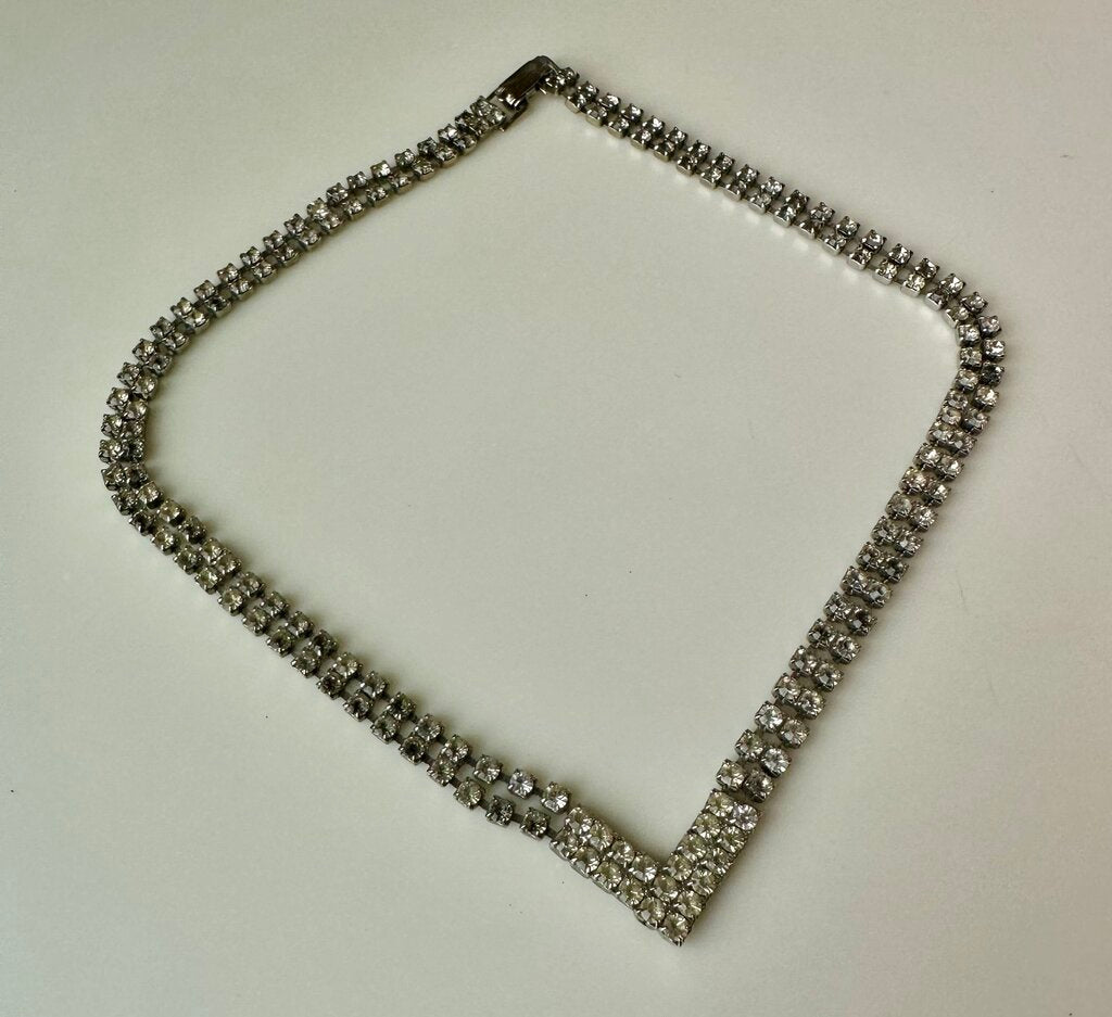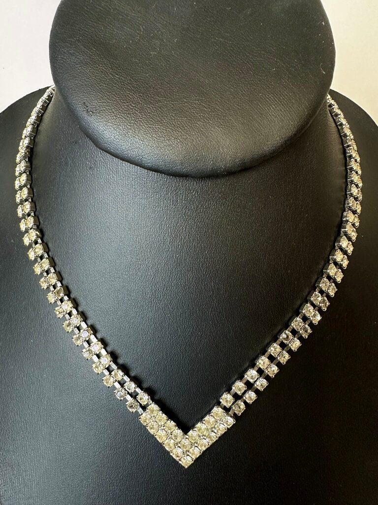 Vintage V Shaped Clear Rhinestone Choker Necklace (16")
