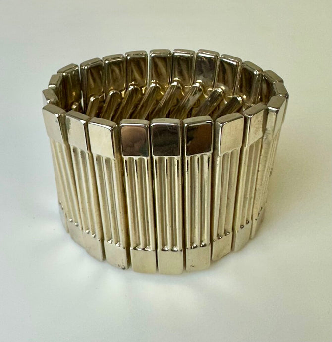 Vintage Goldtone Accordion Stretch 2" Wide Cuff Bracelet