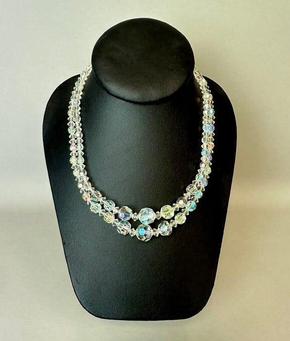 Vintage Clear Aurora Borealis Crystal Two Strand Necklace (17")