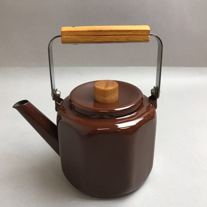 Vintage Brown Enamal Teapot with Wood Handle (5")
