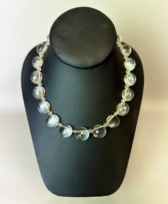 Vintage Clear Faceted Flat Back Glass Beaded Sterling Clasp Necklace (16")