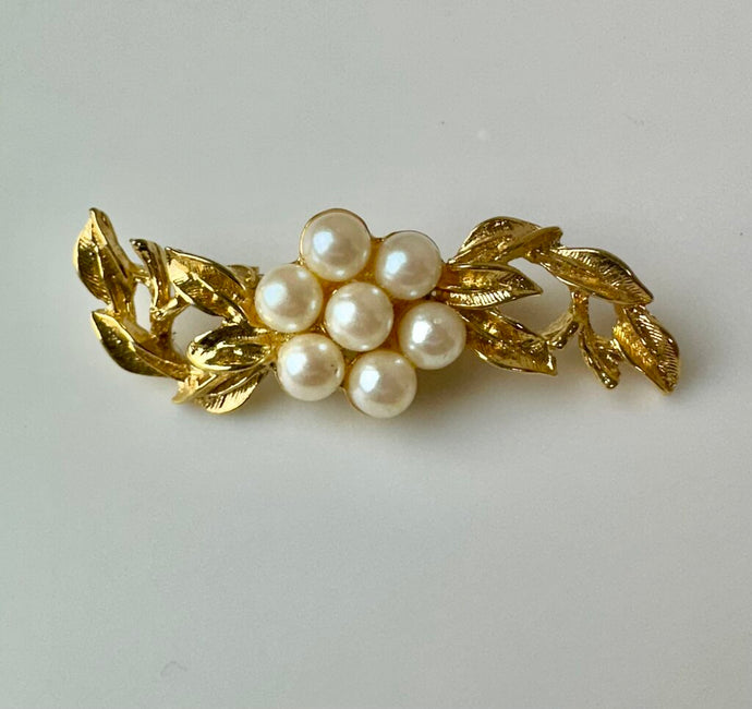 Vintage Richelieu Victorian Revival Goldtone Faux Pearl Brooch Pin (2")