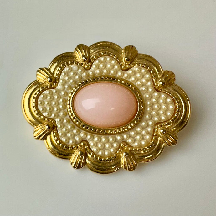 Vintage Avon Victorian Revival Goldtone Pink Cabochon Brooch Pin (2")