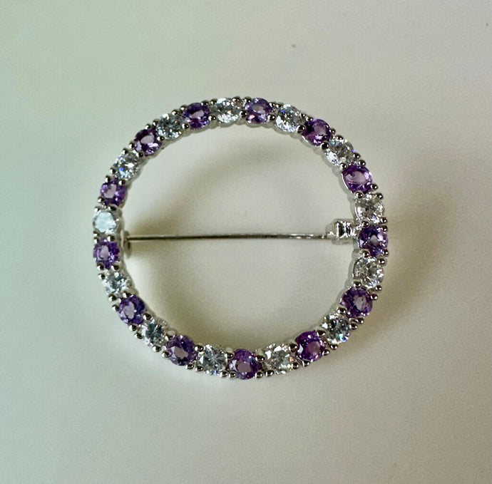 Sterling Amethyst Cubic Zirconia Circle Brooch Pin (1.25")